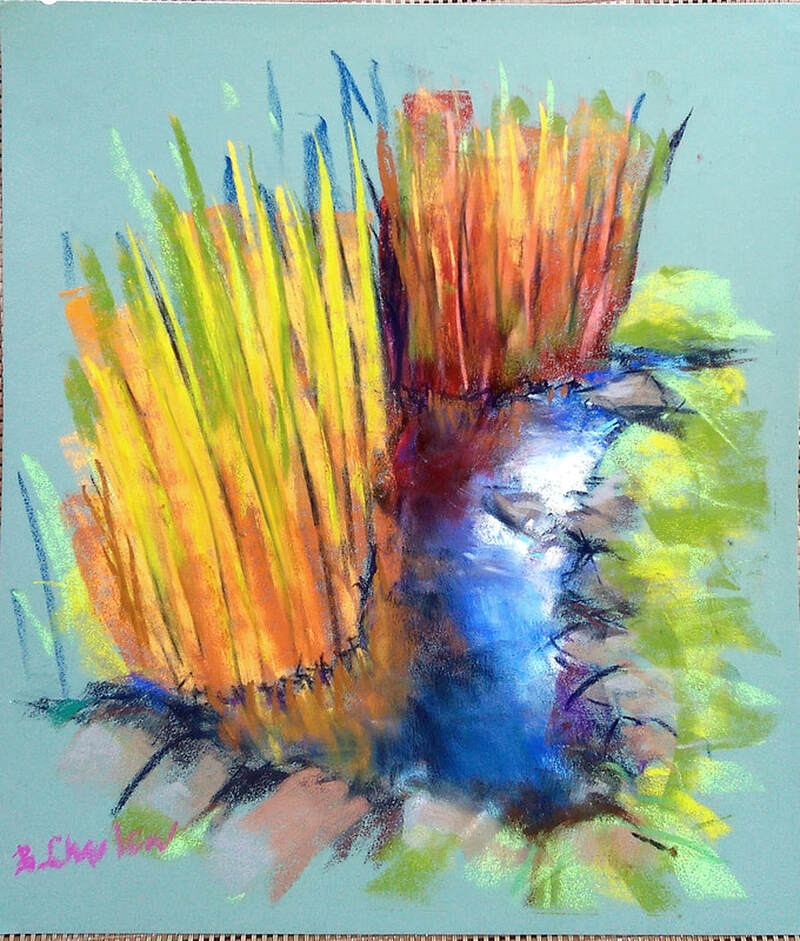 He works in several media: acrylics, watercolor, gouache, Ceracolors, pastel, pencil, pen, sometimes mixing them.